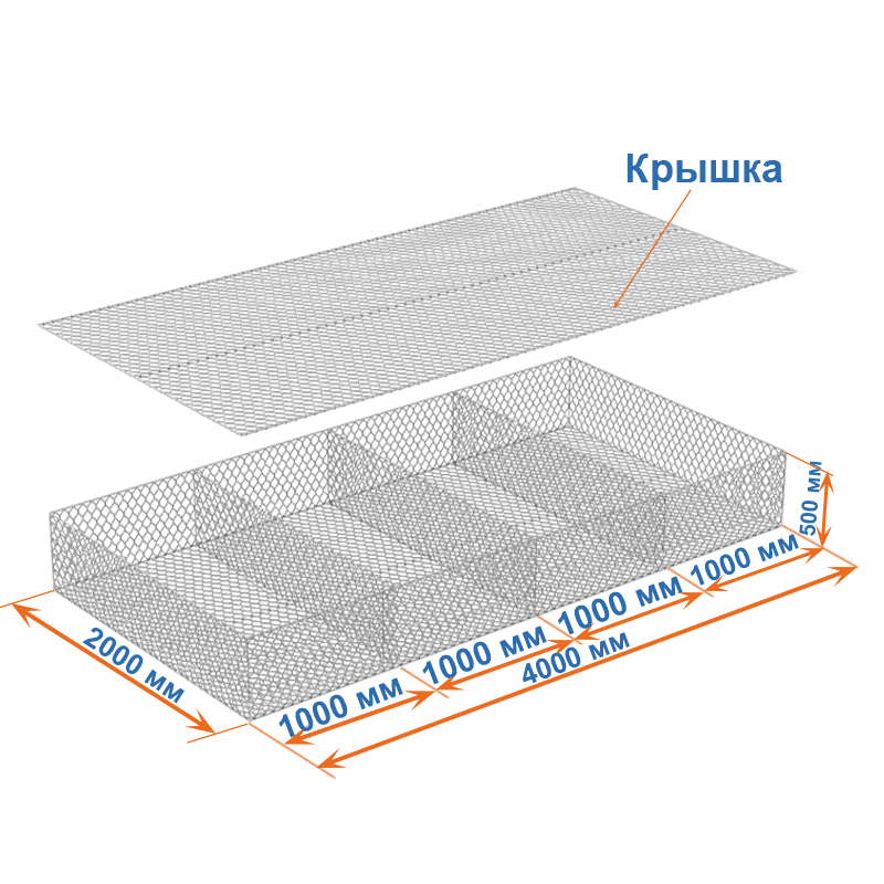 Габион матрац ГСИ-М 4х2х0,5 оцинкованный, Ø проволоки 2,2мм, размер ячейки 6х8 см